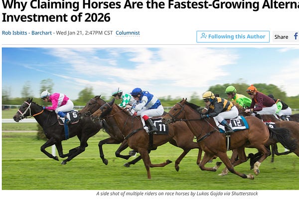 My recent investing column for Barchart.com went outside the box, explaining racehorse ownership: entertainment, favored tax status, and potential…